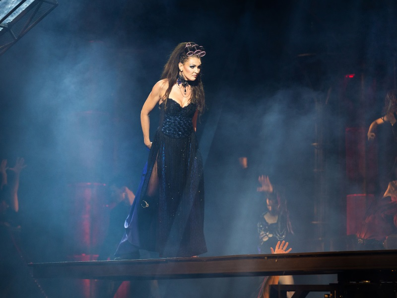 С Санкт-Петербургским государственным театром музыкальной комедии сотрудничает с 2013 года. Исполняла роль Хедды Хоппер в мюзикле «Чаплин» Кристофера Кёртиса.