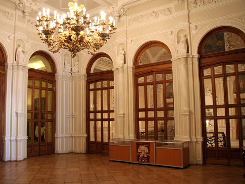 Building of theatreBuilding of the Theatre of Musical comedy has been constructed in 1799 – 1801 years conceivably according to the project of Russian architecture E.Sokolov. Construction was made on the land of prominent St.-Petersburg merchant I. Lazarev. New building became one of numerous profitable houses of his family. Almost after half of the century in 1842 – 1896 years according to the project of Italian architecture L. Vendramini the house was rebuilt, at that time the owner of the house was heiress of Lazarev, princess Urusova. In 1896 Grand duke Nikolay Nikolaevich, grandson of Nikolay I, had bought the house and afterwards presented it to his favourite - well-known actress of Alexandrinsky Theatre M. Pototzkaya. In all probability in this period at will of Grand duke interiors of first floor were anew trimmed, and became splendid palace apartments. Soon afterwards conflagration of 1910 year building was passed to treasury, and then was bought by private entrepreneur I. Piltzov. In accordance with the project of Russian engineers I. Balbashevsky and A. Maksimov inner apartments of the building were reconstructed for presenting theatre productions. Interiors of theatre, cozy and elegant, bear marks of very different architecture styles, that is why they are eclectic in astonishing way. Well-known in whole city three-flights stairs, reception-rooms, lobbies with quaint patterns of modelling, dissemination of painting and bronze are evidence of refinement of rococo style. In decoration of lobby placed over entrance to the theatre could be seen influence of different periods. Here elements of style of Italian Renaissance prevail. Architecture is retained in primordial appearance, except just one lobby that was specially rebuilt as a grotto, which was stylish tendency in the beginning of XX century. Walls of this hall were faced with raw masonry, in which cracks were hidden electric light bulbs; and in small ponds placed in the corners of grotto water flowed. Sometimes in theatre came people who were not interested in theatre at all, they were just curious – they wanted to see the luxurious stairs and to visit grotto. In architecture of the hall – one of the most early and few in number Petersburg interiors of public purpose of the beginning of XX century – it’s possible to see the influence of Russian late classicism. Hall differs from vivid theatre foyers by accented monumentality, plane angles of walls and discretion of architectural details; and elements of architecture borrowed from late classicism went well together with forms corresponding with engineer possibilities of that time. Most likely that unknown architect who created audience hall of the theatre was a represent of «streamlined neoclassicism». |